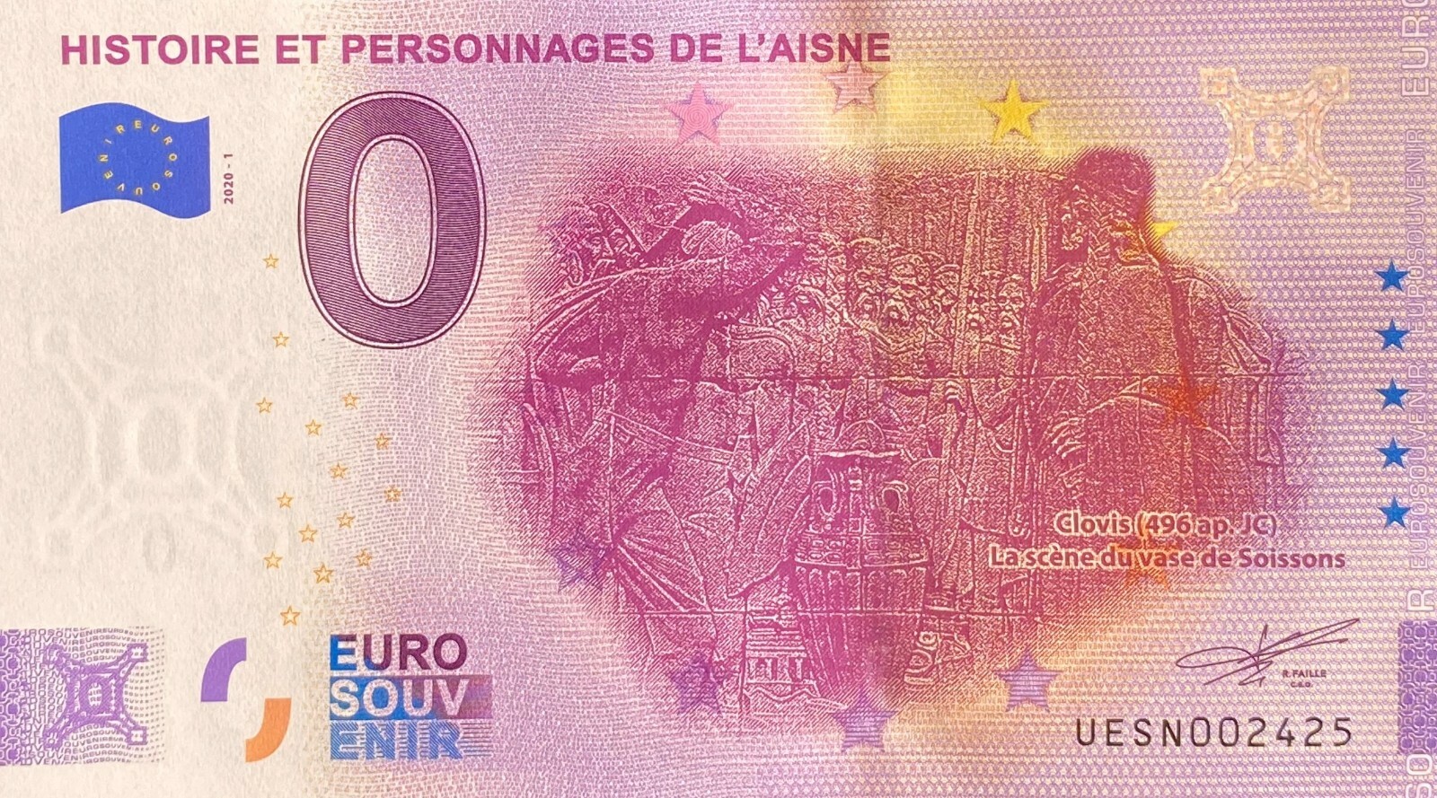BILLET 0 EURO HISTOIRE DE L'AISNE FRANCE 2020 NUMERO SUITE 2425