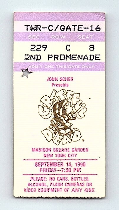 Grateful Dead Mail Ordre Concert Ticket Stub Septembre 14 1990 New York Ville