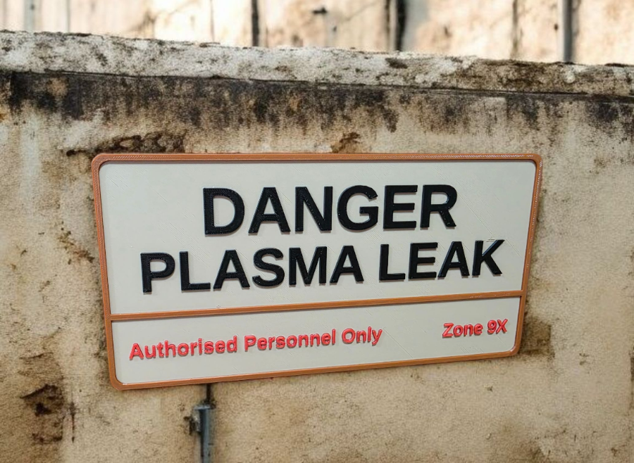 Danger Plasma Fuite Signe – Science-Fictio n 3D Imprimé Porte Plaque – Geek Décor