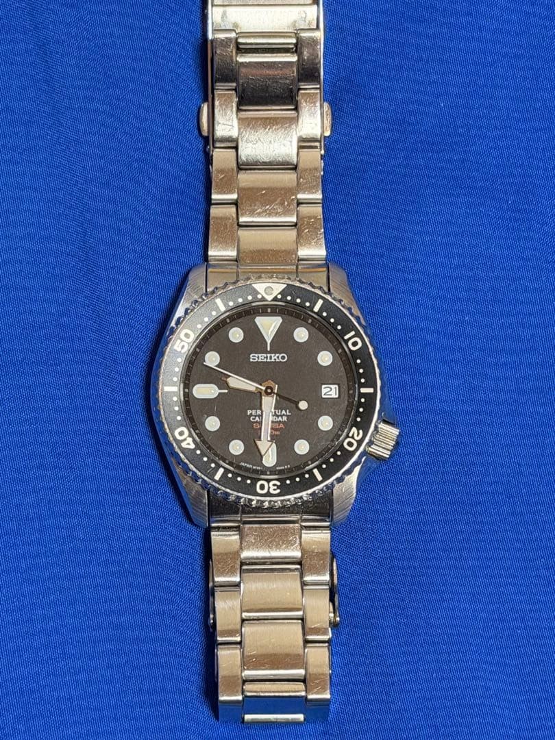 Seiko Prospex 8F35-00A0 Perpétuel Blk SLV Ss Plongeurs 200M Quartz Montre Auth