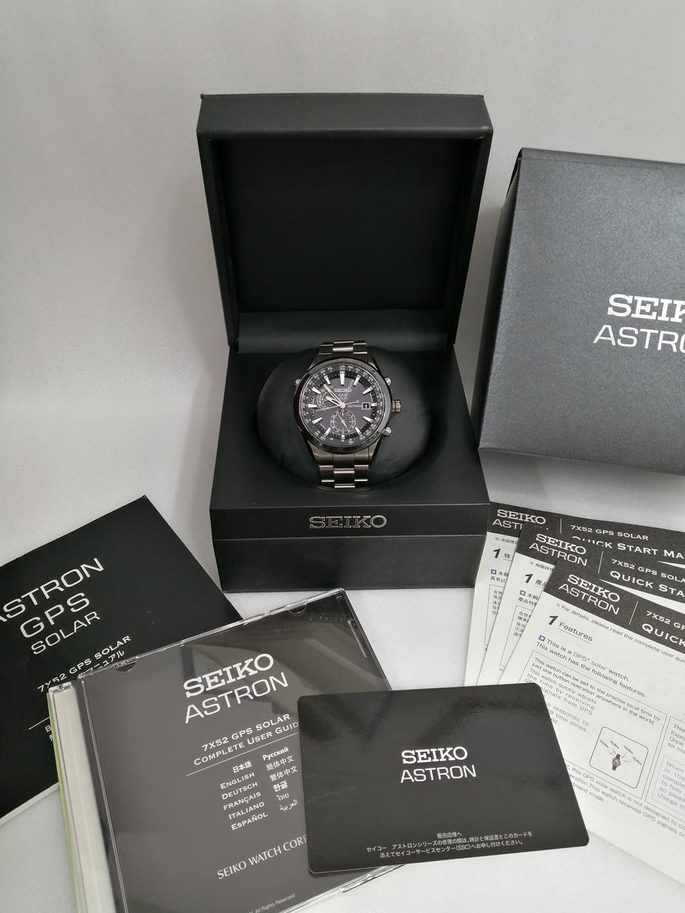 Seiko Astron 7X52-0AA0 GPS Date Titane Céramique Rond Noir Solaire Montre Homme