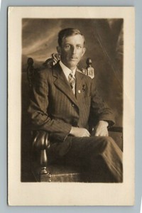 Carte postale ancienne RPPC photo chaise costume homme années 1910 1920