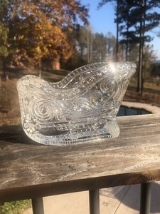 Vintage Heavy Lead Glass Sled Sleigh Christmas Decor Candy Centerpiece 🎁