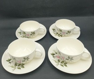 LOT DE 4 TASSES/SOUCOUPES ROSES BLANCHES/ROSE DINNER ROSE BY CROOKSVILLE