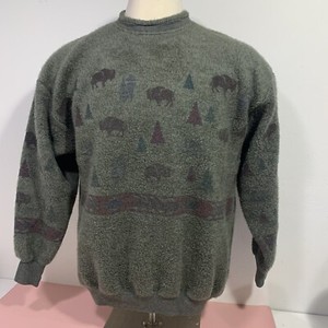 Vintage 1990s Art Unlimited Cabincore Pattern Trees Cabin Buffalo Sweatshirt LRG