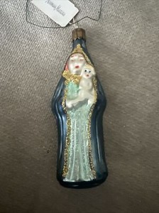 Vintage Hand blown Mercury Glass Christmas Ornament Mary Madonna Child Jesus 4”