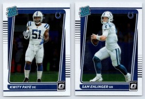 (2) Lot de cartes de football optique Donruss Kwity Paye & Sam Ehlinger Rookie 2021 Colts